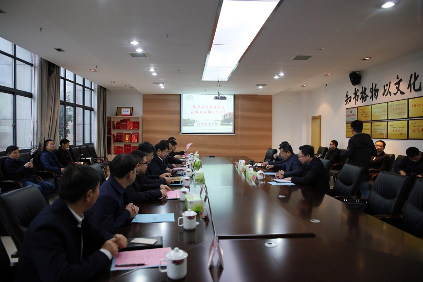报告会前,瞿海一行在图书馆会议室听取了学校工作情况介绍。罗成翼从发展概况、特色优势、综合改革等三个方面介绍了学校情况,同时希望市委市政府进一步加大对学校的支持力度,特别是在学校高层次人才引进、重点学科建设、硕士点培育和基础设施改造等方面给予支持。