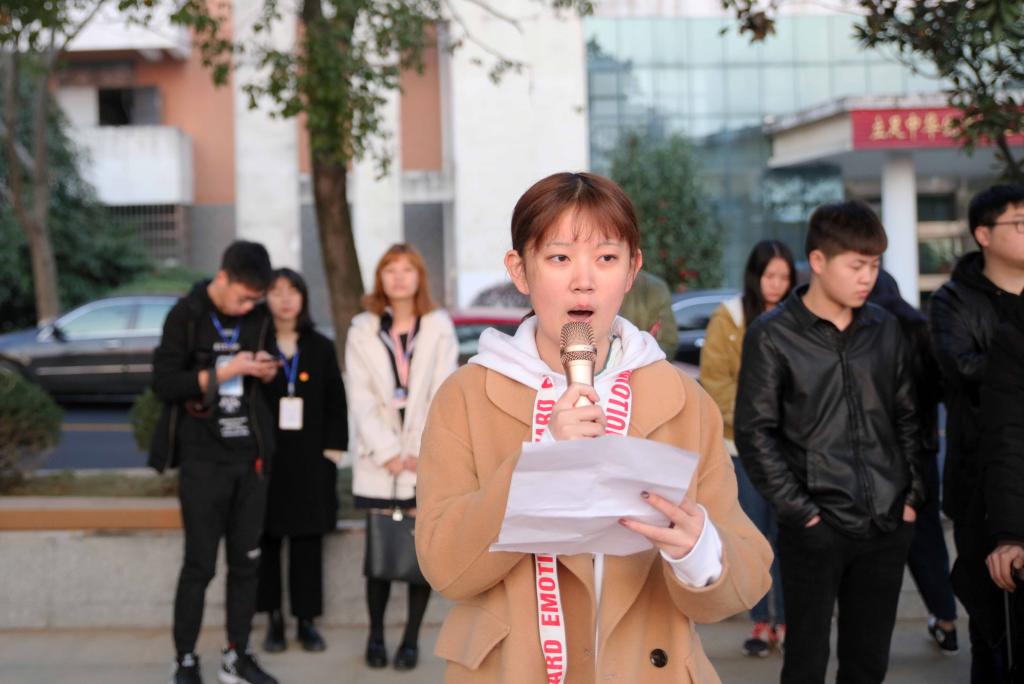 来自建筑与城市规划学院的学生代表张明惠作了国旗下的发言,材料与化学工程学院的学生干部代表聂广安向同学们发出了进一步加强学风建设的倡议。