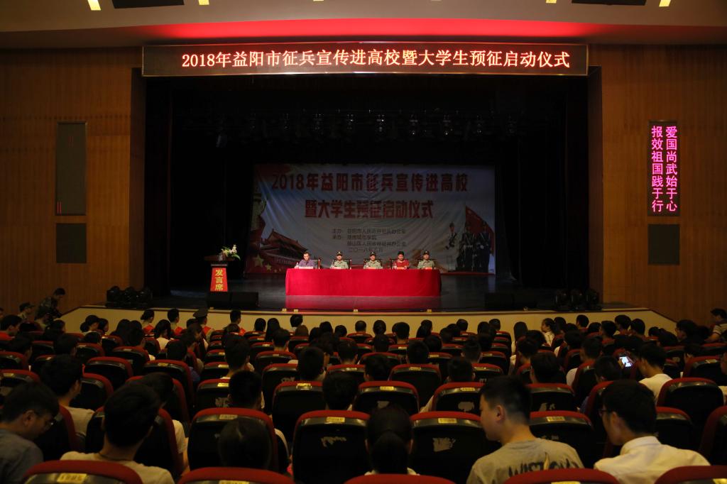 (本网讯)5月3日下午,2018年益阳市征兵宣传进高校暨大学生预征启动仪式在Ky开元音乐厅隆重举行。益阳军分区政委张先旺大校,益阳市征兵办公室主任、军分区动员处处长肖尊华上校,赫山区人武部政委陈跃海,Ky开元党委副书记汤放华、副校长雷存喜,各二级学院党委(党总支)副书记、赫山区人武部工作人员、征兵形象大使以及400余名师生代表出席了启动仪式。仪式由雷存喜主持。