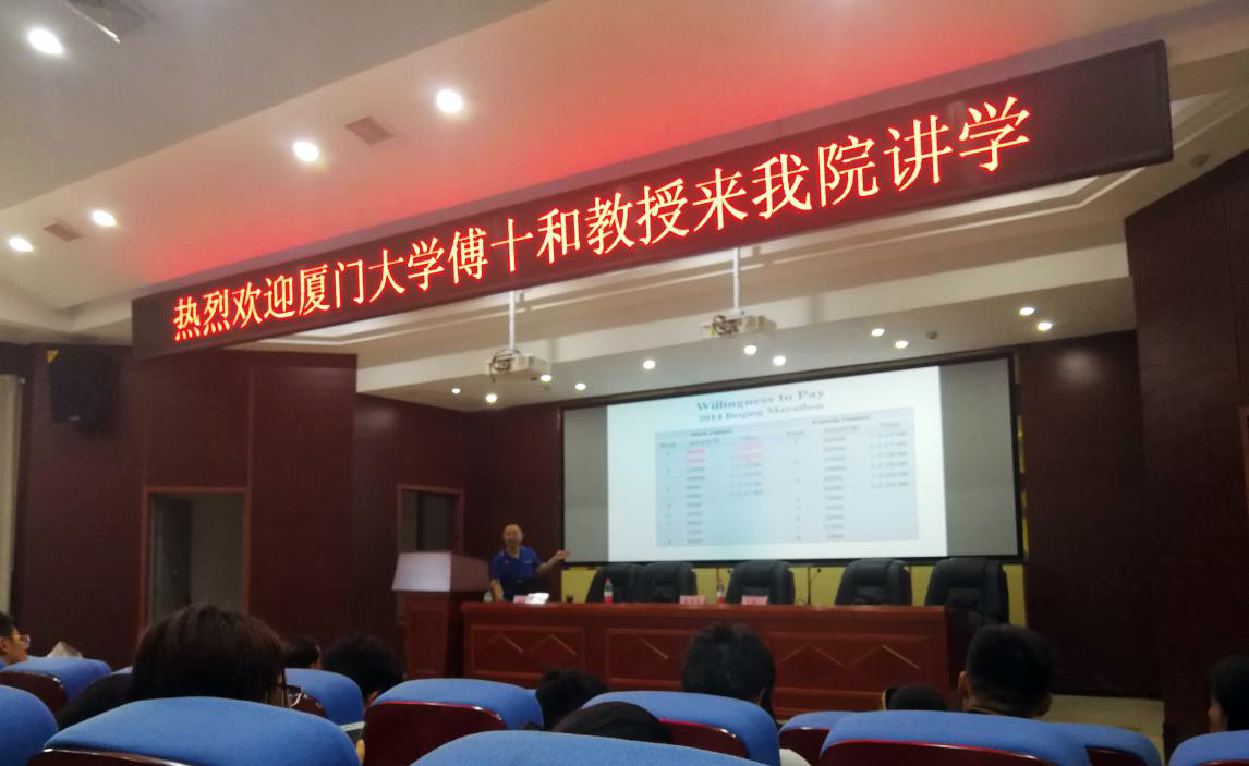 傅十和结合自身成长经历,认为大学生成功品质塑造的重点可围绕创造性、主动性、开放性、领导能力、社交能力、团队精神、冒险精神以及公民意识展开,并将成功的捷径归纳为努力地工作、聪慧地工作,以及全方位提升情商。在具体的实施路径上,傅十和从大学生学习目标与动机、时间管理、工作学习状态、生活要求等诸方面提供了建议。在论及大学生创新能力培养环节,傅十和以“空气污染对马拉松选手成绩的影响”学术论文为基础,深入浅出阐述了大学生应如何科学地发现问题,并找出有重要意义的结论。讲座结束后,傅十和教授一一回答了学生们提出的成长选择困惑、大学生学习动力等问题。