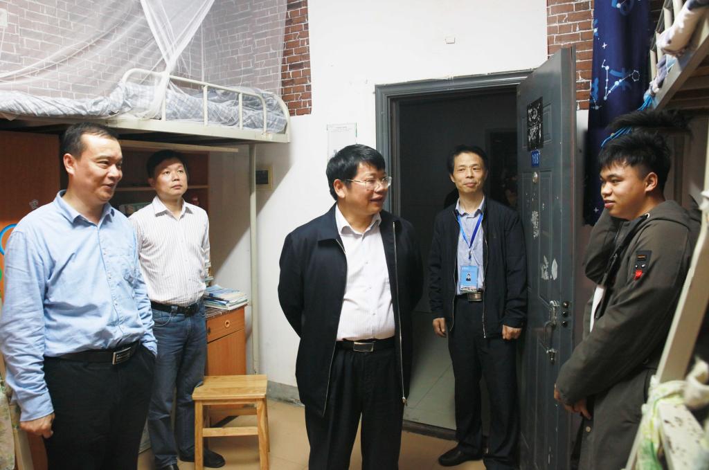 在学生宿舍,罗成翼与和同学们亲切交谈、嘘寒问暖,详细询问他们的日常学习和生活情况,就他们在专业学习、英语四六级学习和考研等方面存在的问题和困惑进行了探讨解答。罗成翼勉励同学们珍惜大学时光,做好学业规划,努力实现人生价值。