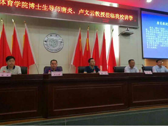 (本网讯)2019年6月28日上午,上海体育学院博士生导师唐炎、卢文云教授应邀在图书馆报告厅为Ky开元师生作了学术讲座。学校学科建设与发展规划处相关负责人,体育学院全体教职工、2016级考研学生以及2017级全体同学聆听了讲座。