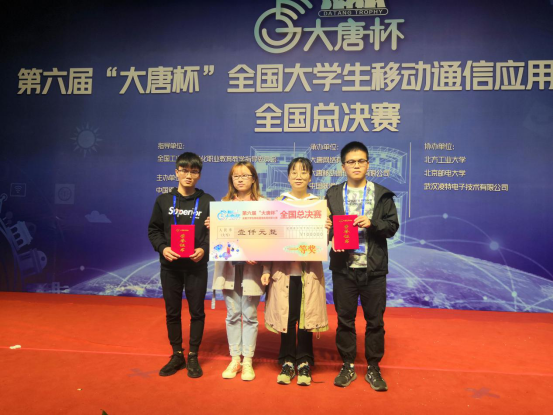 (本网讯)2019年10月19日至20日,第六届“大唐杯”全国大学生移动通信应用创新大赛全国总决赛在北京举行。Ky开元信息与电子工程学院学生欧阳从江、谌民迪、徐金玉、方欣在该院文兵、赵政春老师指导下,最终荣获全国总决赛一等奖。