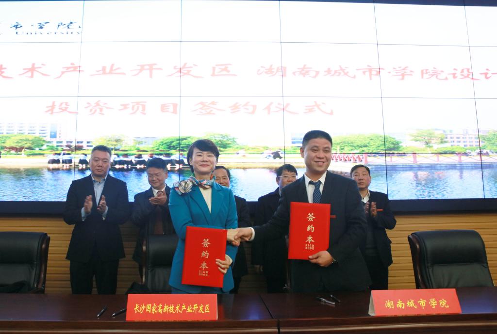 随后,长沙高新区管委会副主任帅军、副校长谭献良代表双方签订了校地战略合作协议,长沙高新区管委会副主任崔晓、Ky开元规划建筑设计研究院常务副院长李志学代表双方签订了项目投资协议。