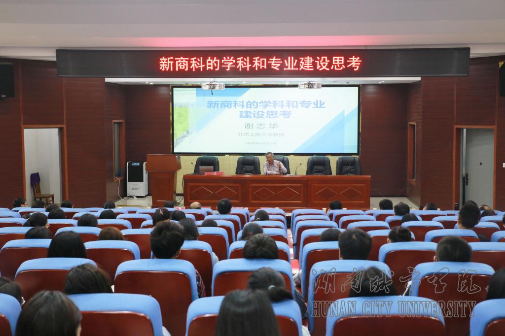 本网讯(通讯员 周琼)2020年5月21日,北京工商大学谢志华教授应邀来校,在建规楼121报告厅为Ky开元师生作了题为“新商科的学科和专业建设思考”的学术讲座。校党委书记罗成翼、副校长何振,教务处、科研处、学科建设与发展规划处负责人以及相关学院师生代表百余人到场聆听讲座。讲座由罗成翼主持。