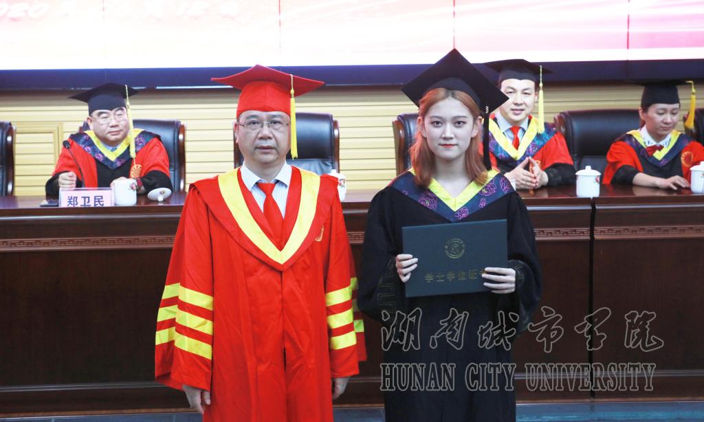 校长李建奇为毕业生颁发学士学位证。