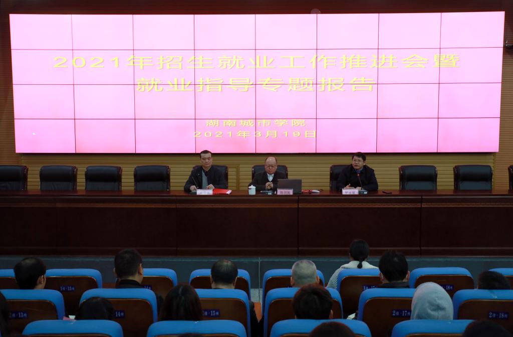 本网讯 2021年3月19日下午,学校在图书馆报告厅召开2021年就业工作推进会,并举办2021年第一期就业指导专题报告会。党委书记罗成翼出席会议并讲话,他要求就业部门和各学院打出就业服务“组合拳”,努力实现毕业生更高质量和更充分就业。湖南信息职业技术学院院长陈剑旄作“结构化面试策略与方法”的就业指导专题报告。