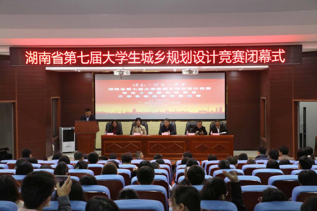 17日上午,此次大赛的闭幕式在建规楼121召开,湖南省城乡规划学会理事长、校长汤放华,副校长雷存喜以及教务处相关负责人出席。汤放华在讲话中指出,要正确认识我们所处的伟大时代和规划设计师所承担的使命,鼓励同学们学好本领,在新型城镇化和乡村振兴中发挥专业特长,把生态文明价值理念贯彻到每一寸土地规划及设计中去,为人民幸福生活创造更加美好的人居环境。随后,与会领导为获奖单位和获奖者颁奖。