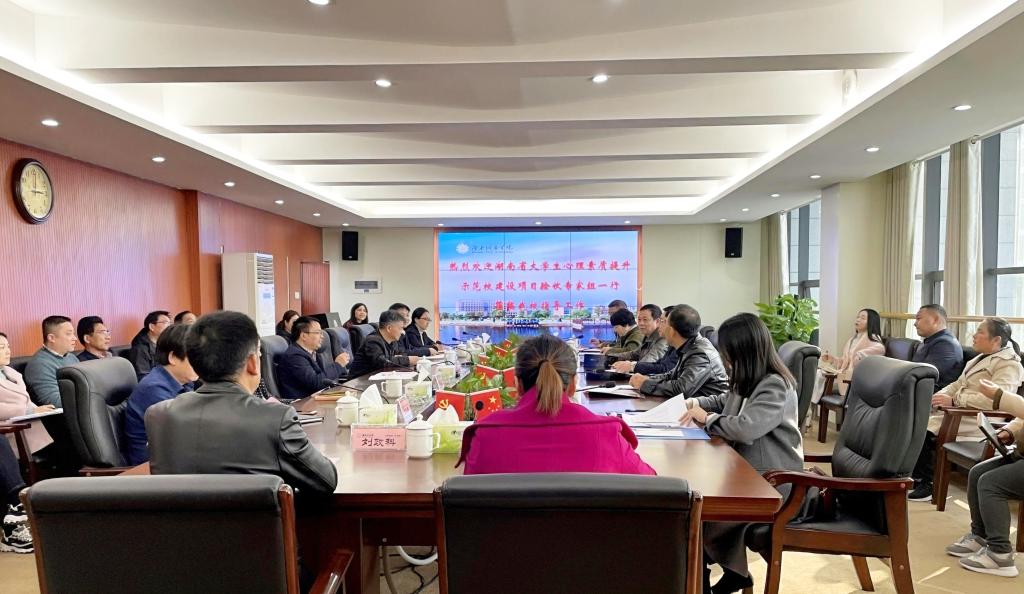 本网讯(通讯员 陈文琴)2021年12月9日,省教育厅“湖南省大学生心理素质提升示范校建设项目”验收专家小组一行6人莅临Ky开元现场验收。校长汤放华热情接待了专家组一行,副校长袁志成、部分职能处室负责人、各二级学院副书记、心理健康教育中心全体教师和部分辅导员代表参加汇报会和反馈会。