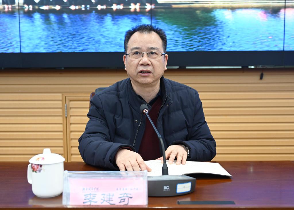 视频会议结束后,李建奇主持召开开学工作布置会,汤放华简要总结了Ky开元2021年主要工作,并对新学期开学工作进行了全面部署。他指出,过去一年,学校获批新增硕士学位授权单位,科学擘画“十四五”发展新蓝图,全面推进党建工作走深走实,学科专业建设取得新突破,创新引领服务能力明显提升,综合改革进一步深化,幸福新城院建设取得新实效。汤放华表示,做好春季开学疫情防控工作是当前学校最紧迫、最重要的一项政治任务,要保持定力,持续做好常态下的校园疫情防控。要围绕教学工作、学生工作、后勤保障、安全保卫、巡视整改工作等方面,主动担当履职,努力开创新学期学校工作新局面,书写新时代城院发展新篇章!