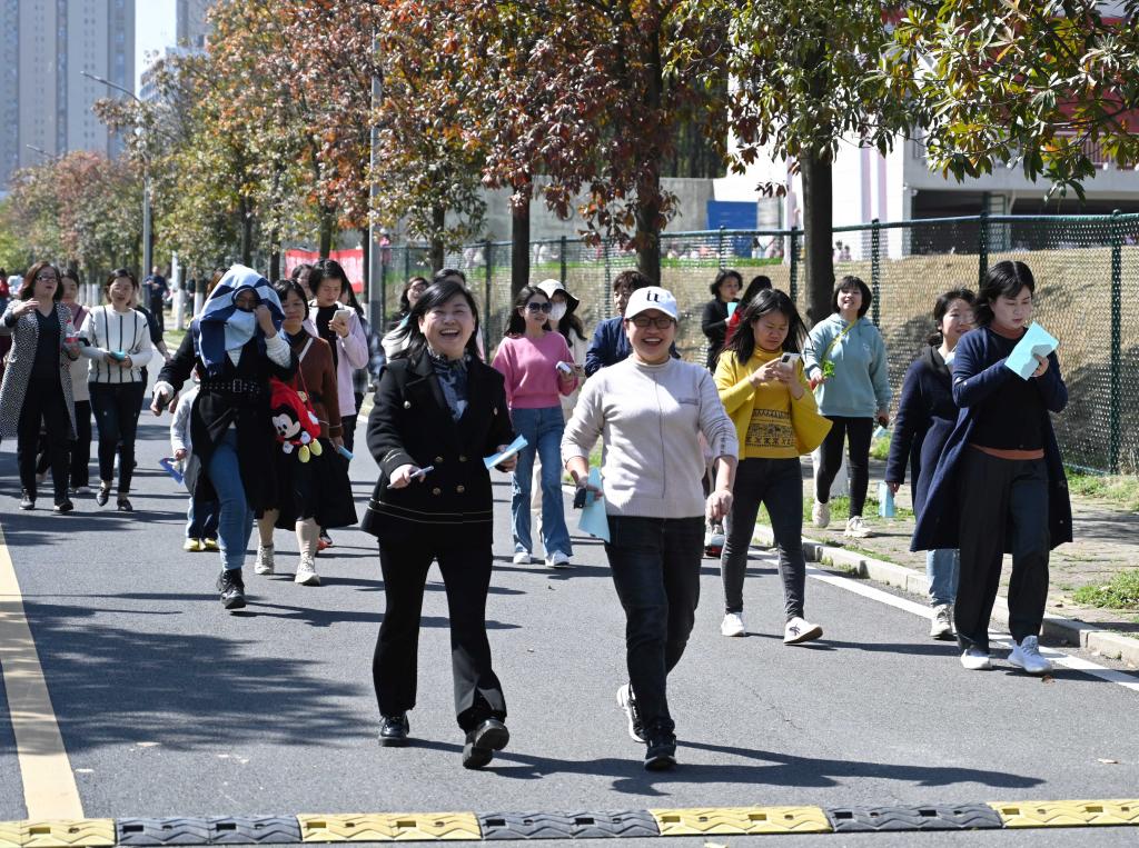 慢步跑途中笑语声喧、快乐相伴。