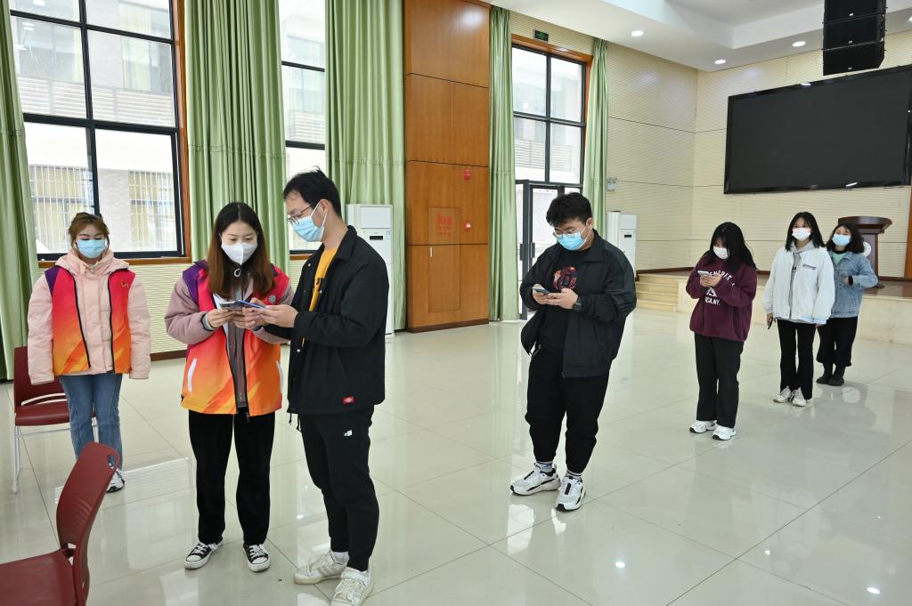 党有号召,团有行动!“请大家准备好手机健康码,保持好‘一米线’安全距离。”“请大家戴好口罩,做好个人防护,保持安静。”3月23日,在学校6个核酸检测采样点,城院学生志愿者正在引导师生有序排队。