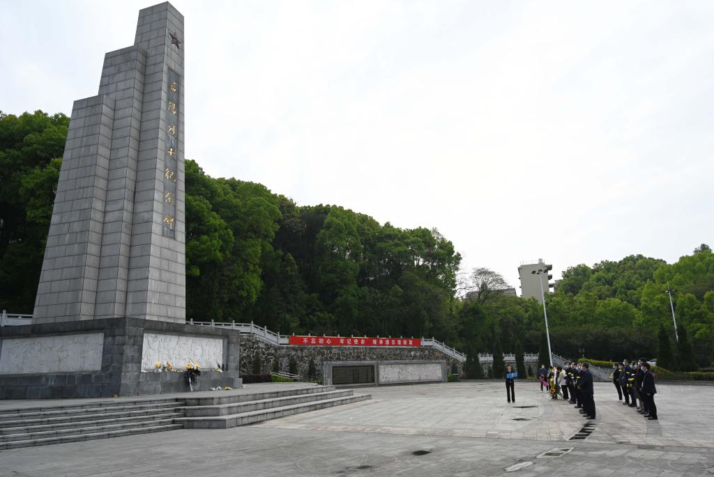 全体成员环绕瞻仰烈士纪念碑并献上花束。