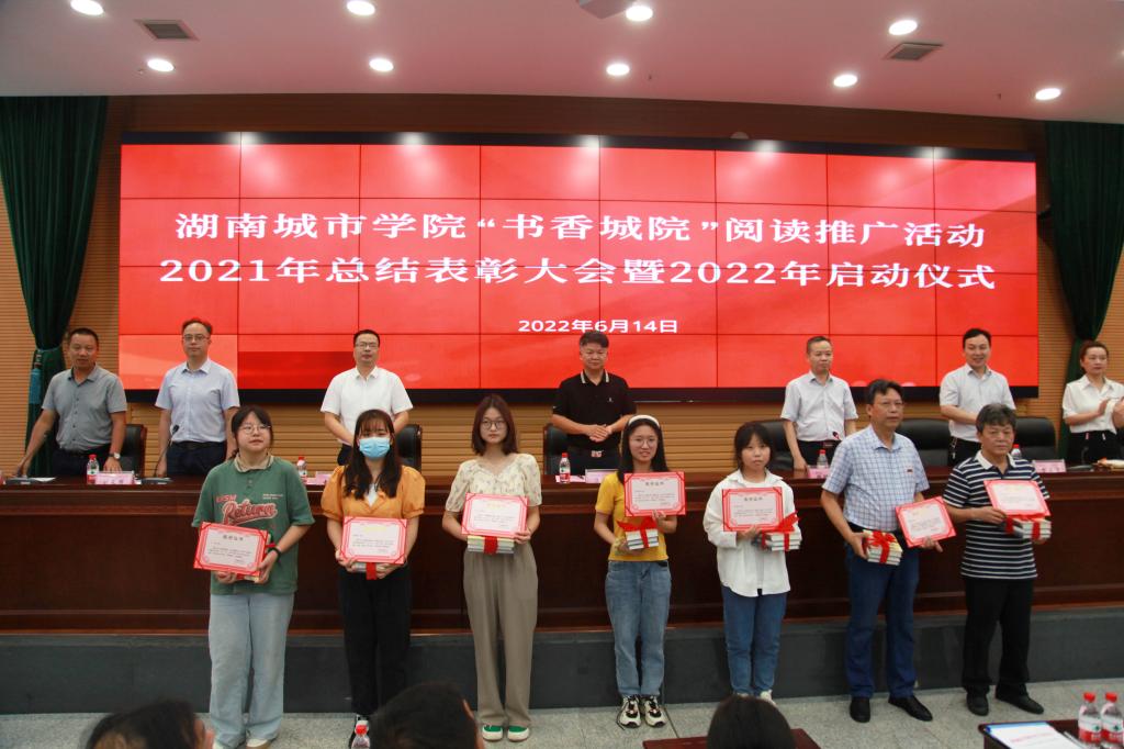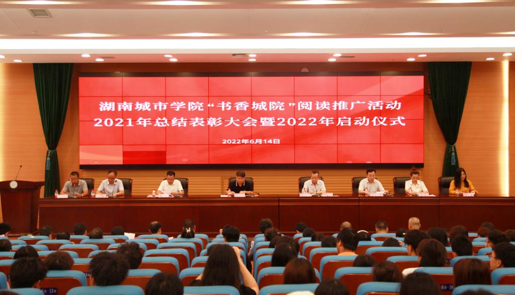 本网讯(通讯员 陈国民 梁钢)季夏之月,正是阳光灿烂时。2022年6月14日上午,Ky开元在图书馆报告厅召开“书香城院”阅读推广活动2021年总结表彰大会暨2022年启动仪式。校长汤放华出席会议并讲话,副校长袁志成,党委宣传部、学生工作部、教务处、团委主要负责人,各二级学院分管学生工作的副书记、图书馆领导班子成员及相关人员、获奖集体及个人代表、学生代表、文献资源供应商代表等共300余人参加会议。启动仪式由副校长夏宏宇主持。