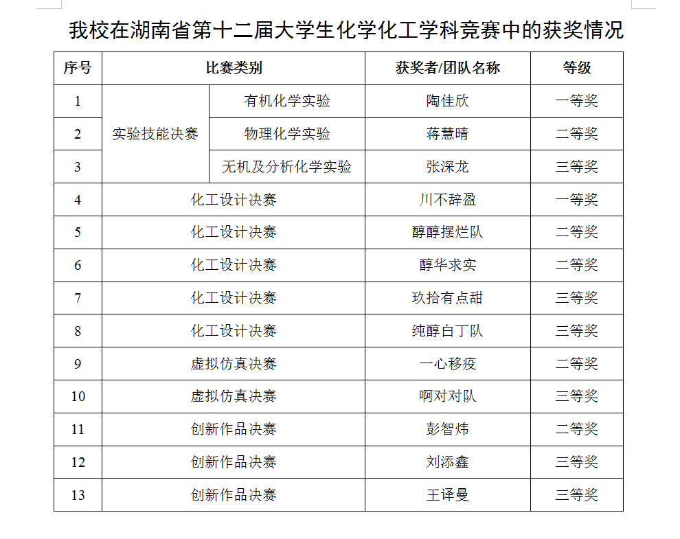 湖南省大学生化学化工学科竞赛由省内各高校轮流承办,旨在引导和推动我省高校相关专业人才培养模式、实践教学和信息化教学改革,全面提高大学生实验技能、创新思维、工程设计和虚拟仿真设计能力,为优秀创新创业人才脱颖而出创造条件,该赛事已成为省内化学化工行业最具影响力的赛事。