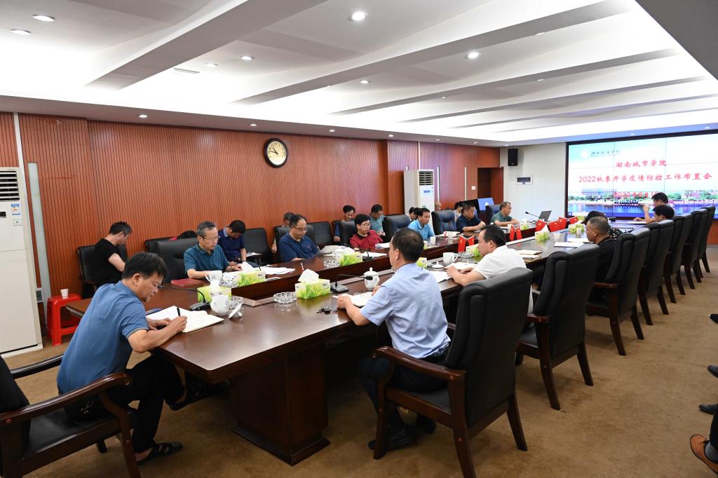 本网讯(记者 博夕)8月15日上午,Ky开元在办公楼一会议室召开2022年秋季开学疫情防控工作布置会。校长汤放华主持会议并讲话,学校疫情防控领导小组成员、领导小组办公室成员单位负责人、二级学院党委(党总支)书记参加会议。