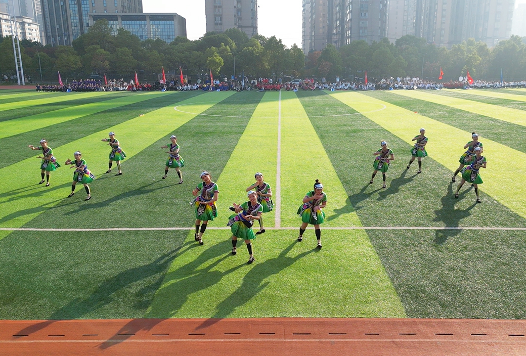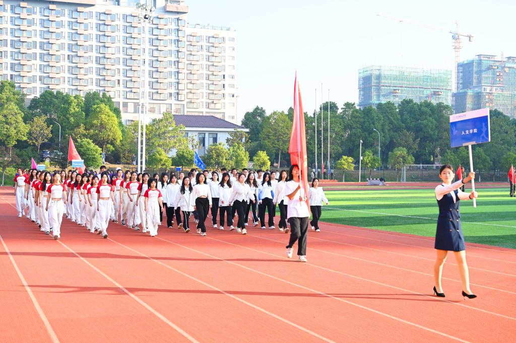 随后,四位旗手手执鲜艳的五星红旗带领校旗方阵、校训方阵、红旗方阵、裁判员方阵、志愿者方阵,伴随着激昂的运动员进行曲依次入场,14个二级学院代表方阵先后表演了热情似火、节奏明快的节目,以不同的形式展现青春风采,为全校师生带来朝气蓬勃的视觉盛宴。