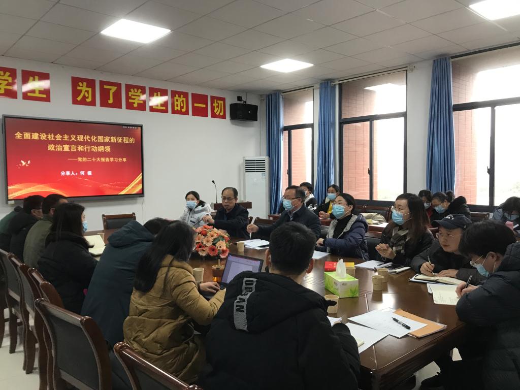 何振以“全面建设社会主义现代化国家新征程的政治宣言和行动纲领”为题,从战略定位、大会主题、基本路径等七个方面对党的二十大报告进行了全面深入的阐述。他强调,管理学院广大党员干部要牢牢把握以中国式现代化推进中华民族伟大复兴的使命任务,深刻把握“两个确立”,增强“四个意识”、坚定“四个自信”、做到“两个维护”,认真学习、深刻领会党的二十大精神并贯彻落实到具体工作之中,为全面建设湖南城市大学而努力奋斗。