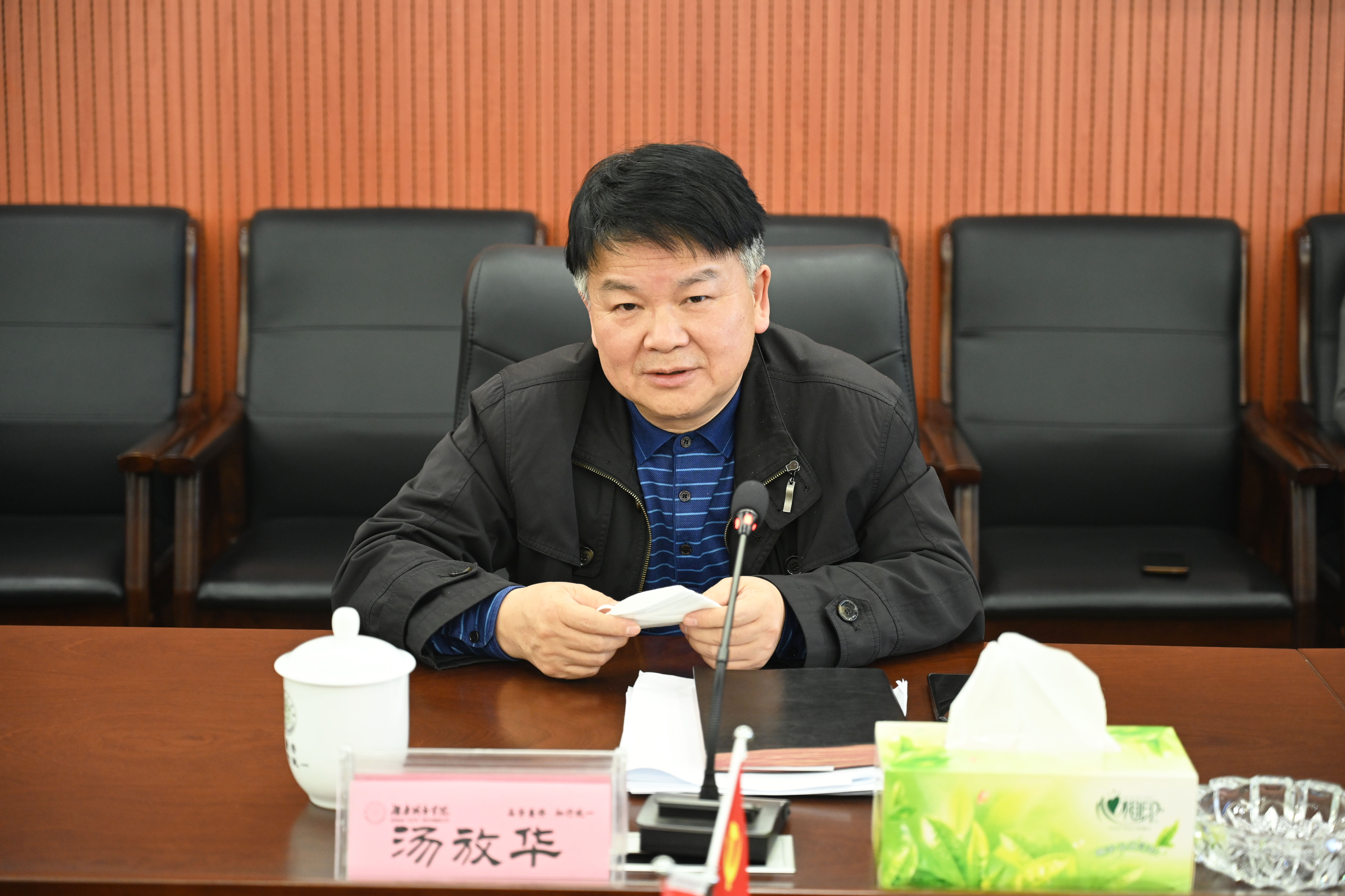 会上,汤放华简要介绍了学校近年来的改革发展情况。他指出,学校新的领导班子高度重视与华为技术有限公司的合作,希望学校就建立校企联合实验室、联合技术攻关、共同培养人才等方面,与企业找到合作发力点、落脚点。他要求学校各相关部门对与华为技术有限公司的合作全力支持、全力参与、全力保障。