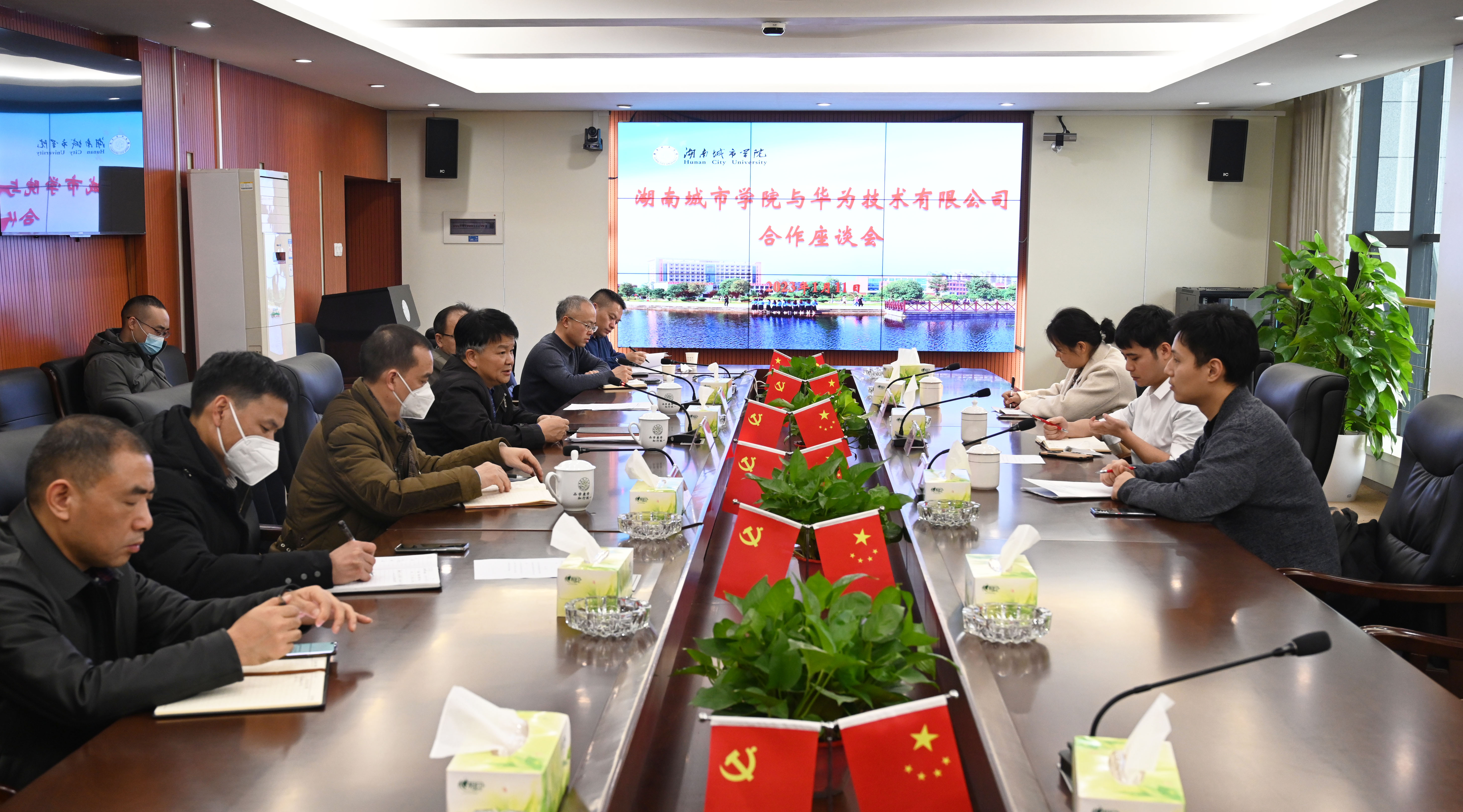 本网讯(通讯员 胡拥军)1月11日,华为技术有限公司益岳区域总经理郑志林先生一行3人应邀来校,就Ky开元与华为技术有限公司校企合作进行座谈。学校党委书记汤放华,副校长何振、雷存喜出席,科研处、教务处、湖南新型智慧城市研究院和相关学院负责人参加,座谈会由何振主持。