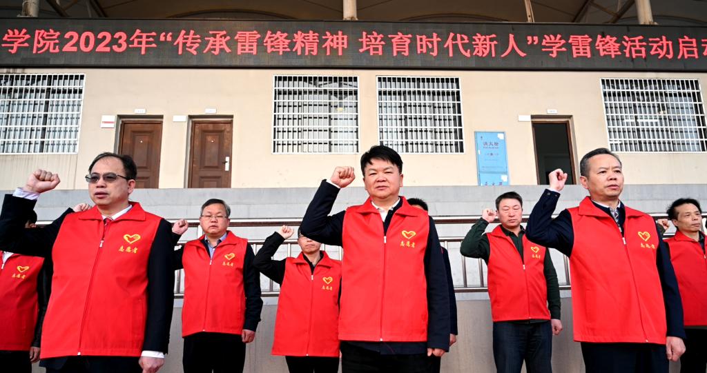 集体宣誓后,学校党委书记汤放华介绍了学校志愿服务活动情况。他指出,2022年学校各志愿服务队伍共开展志愿服务活动400余场,组建了30支校级志愿者团队,协助益阳市开展了“创文创卫建设”“关爱农村留守儿童活动”“世界献血者日”等志愿活动,活动类型多样、内容丰富、辐射面广。他强调,要深入学习贯彻落实习近平总书记关于弘扬雷锋精神的重要论述,着力从加强组织体系、项目体系、文化体系建设等方面继续发展壮大学校学雷锋志愿服务队伍,持续深化拓展学雷锋活动。他鼓励广大学子把青春奋斗与雷锋精神有机结合起来,勇做实现中华民族伟大复兴的先锋力量,让青春在为党和人民、为国家和民族的不懈奋斗中绽放出绚丽之花。