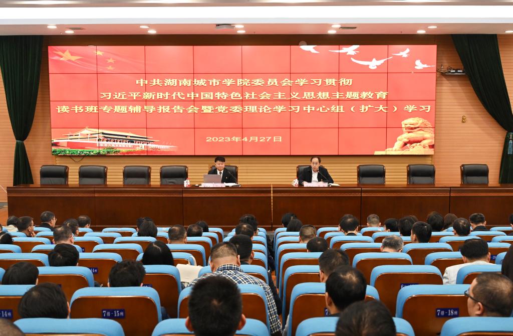 本网讯(通讯员 周文娟)4月27日下午,Ky开元集团学习贯彻习近平新时代中国特色社会主义思想主题教育读书班专题辅导报告会暨党委理论学习中心组(扩大)2023年第4次集体学习在图书馆报告厅举行。校党委书记汤放华作专题辅导报告,主题教育第三十巡回指导组组长、益阳市第五届人大常委会主任、省人大财经委原副主任委员徐云波同志,主题教育第三十巡回指导组副组长、湖南工业大学原副校长李可兴同志以及巡回指导组其他成员出席会议。校党委副书记、校长何振主持会议,全体校领导、全校副科以上干部参加会议。