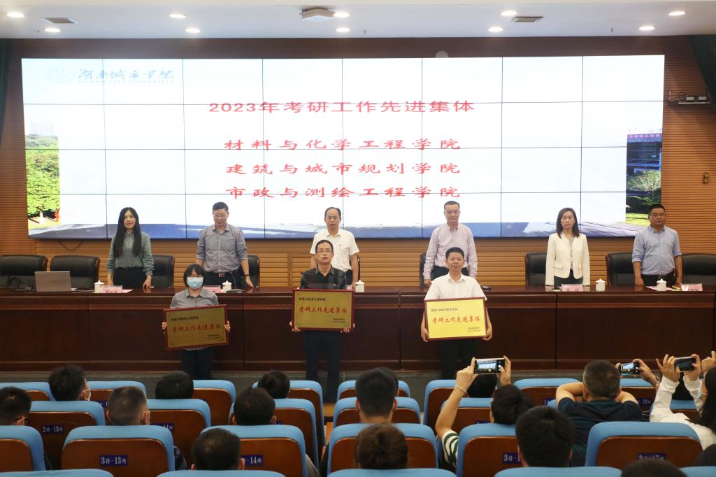 会上,陈列尊宣读了《关于表彰2023年考研工作先进单位的决定》。2023年,Ky开元部分二级学院和班级在考研工作中表现优异,其中,材料与化学工程学院、建筑与城市规划学院、市政与测绘工程学院三个学院被授予“考研工作先进集体”称号,考研录取率分别为29.23%、23.33%、22.40%。土木工程学院、美术与设计学院/国际教育学院两个学院被授予“考研工作进步奖”称号,1908103、1902201、1908301、1908601、1801102、1801403等6个班级被授予“考研先进班级”称号。随后,出席会议的领导向获奖集体现场颁发了奖牌(状)。