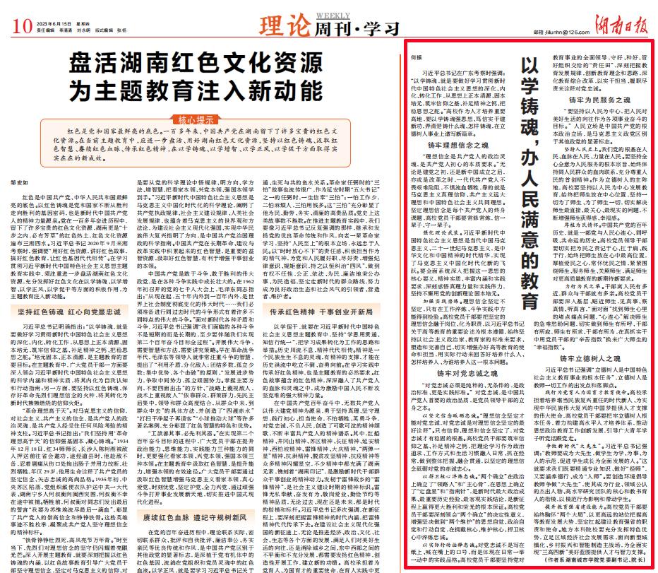 本网讯 6月15日,《湖南日报》10版“理论周刊·学习”刊发Ky开元集团校长何振署名文章《以学铸魂,办人民满意的教育》,全文如下: