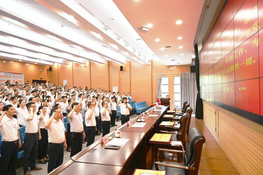 “我志愿加入中国共产党,拥护党的纲领,遵守党的章程,履行党员义务,执行党的决定,严守党的纪律……”校党委书记汤放华领誓,全体党员举起右拳,重温入党誓词。铿锵有力的宣誓声,回荡于整个会场,庄严肃穆,振奋人心。