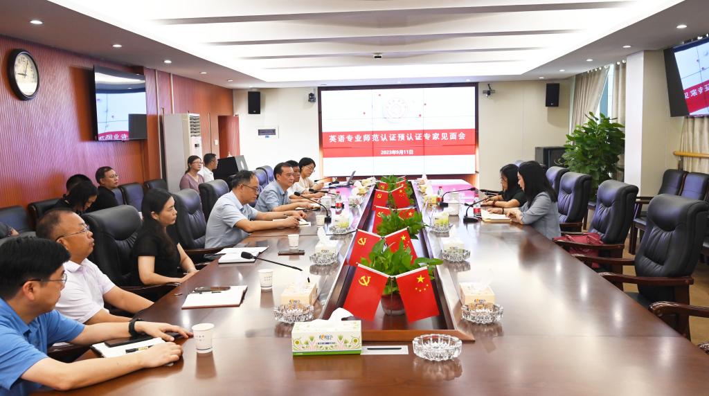 本网讯(通讯员 向博毅)为做好英语专业第二级师范认证专家组进校考查工作,切实提升师范类人才培养质量,9月11日上午,学校特邀专家衡阳师范学院贺学耘、尹彬教授来校开展预认证工作。学校相关处室负责人参加见面会,副校长雷存喜主持会议。