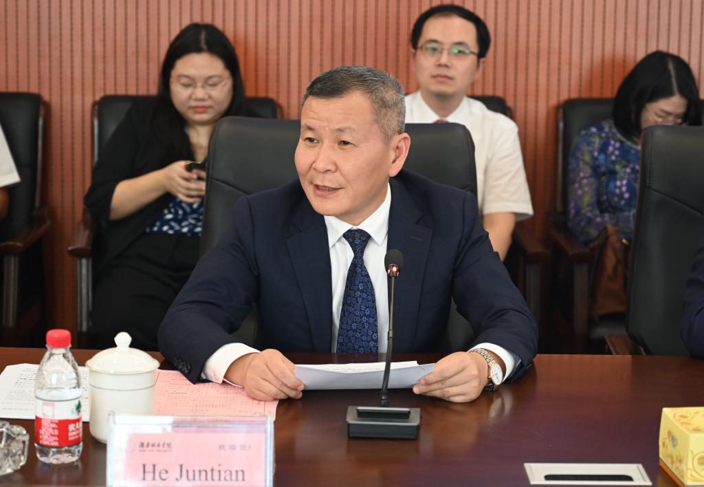 15日下午,见面交流会在办公楼一会议室举行。省教育厅党组书记、厅长夏智伦,益阳市副市长何军田,省教育厅国际交流处处长周芳友,校党委书记汤放华、校长何振、副校长雷存喜出席,相关职能处室和二级学院负责人参会。会议由汤放华主持。