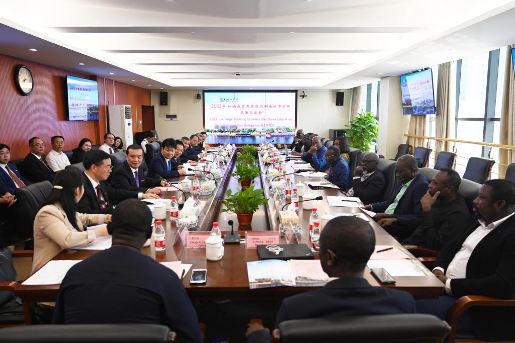 16日上午,双方开展了学术交流会。汤放华、约翰逊·尼亚科·邦蓬分别就中国高等教育发展和加纳高等教育发展作了主题报告,与会人员围绕报告内容进行了热烈的交流与讨论。
