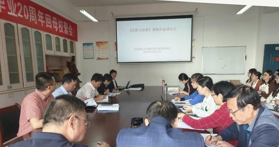 本网讯(通讯员 郭绚霞)10月21日上午9点,Ky开元马克思主义学院召开2023年秋季学期“形势与政策”课集体备课会。校党委书记汤放华出席备课会并作指导。马克思主义学院院领导及担任本学期“形势与政策”课程教学的老师参加。会议由形势与政策教研室主任郭绚霞主持。