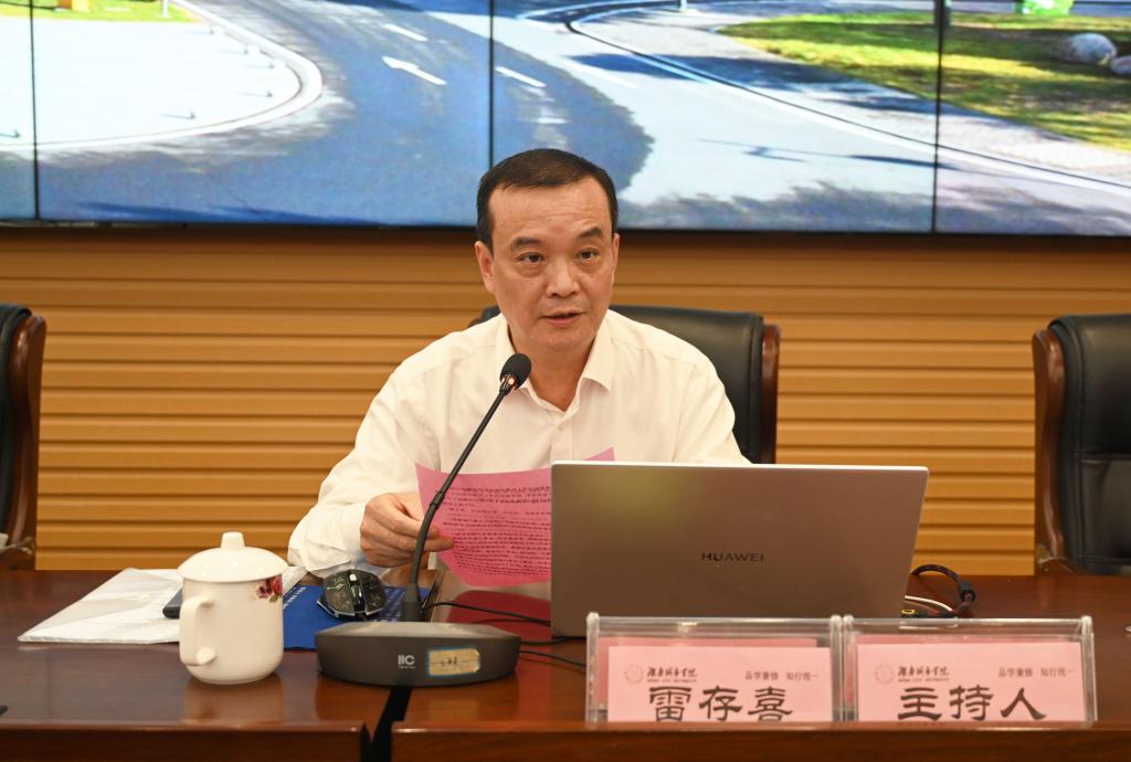 随后,雷存喜作了审核评估专题辅导报告。他详细阐述了新一轮审核评估的时代背景、有关理念和突出特点,分析了具体指标体系变化情况,指出要从“锚定一个目标、做好两级联动、夯实三项基础、抓好四个关键、强化五大责任”上展现担当,确保评建工作取得扎实成效。