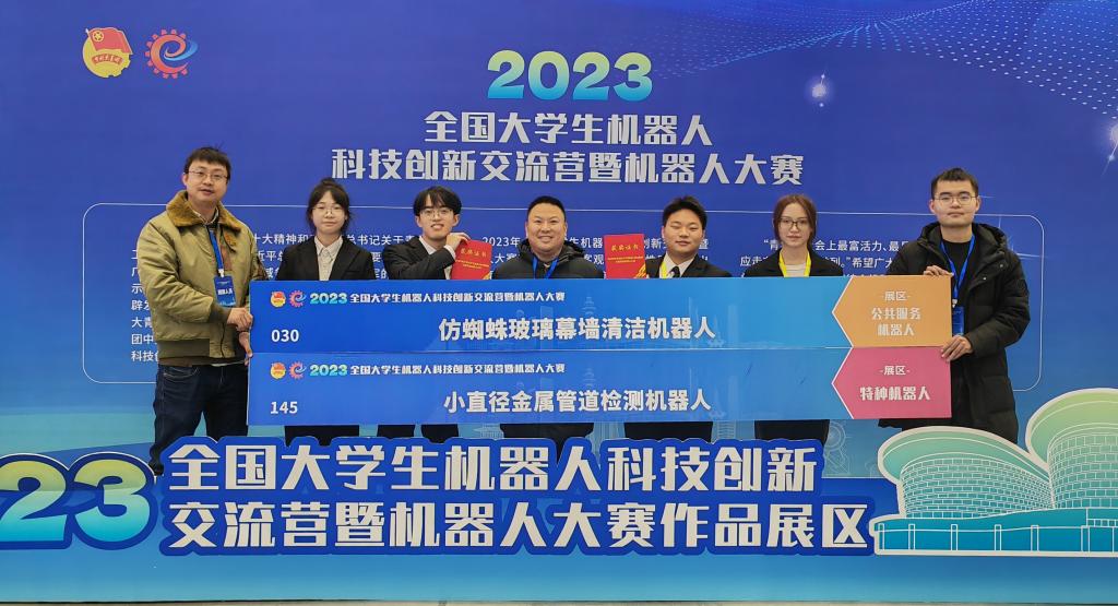 本网讯(通讯员 孔军)12月18—19日,2023年全国大学生机器人科技创新交流营暨机器人大赛在山东日照国际展览中心举行。Ky开元“仿蜘蛛玻璃幕墙清洁机器人”“小直径金属管道检测机器人”两件作品以优异的路演表现,获得中科院院士毛明领衔的评审委员会认可,分别获得大赛特等奖和二等奖,实现Ky开元在该项赛事特等奖的突破。共青团中央书记处常务书记、全国青联主席徐晓,山东省人大常委会副主任王随莲,中国科学院院士、大赛评审委员会主任毛明等出席颁奖仪式,并为获奖团队颁奖。