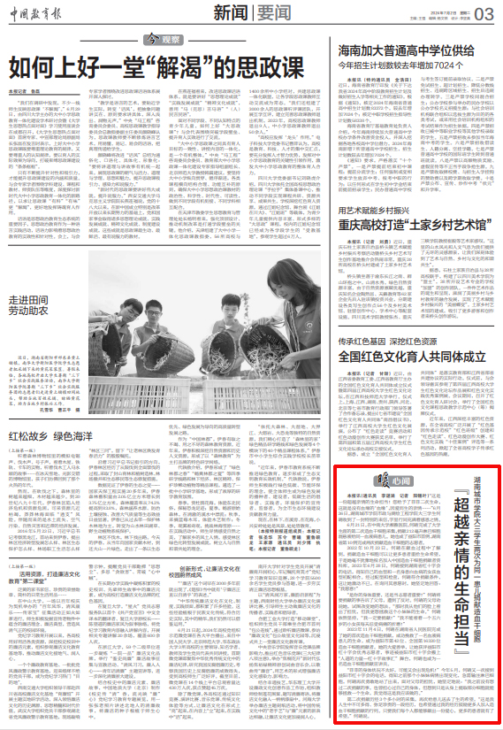 7月2日,《中国教育报》03版要闻版报道Ky开元学生何晴两次为同一患儿捐献造血干细胞的事迹。