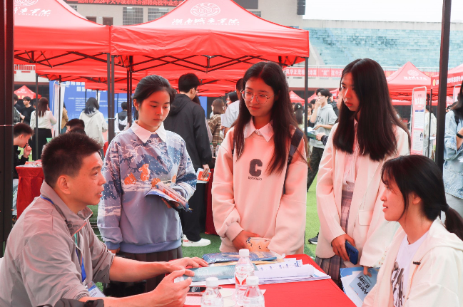 本网讯(通讯员 朱怡 冷紫怡)10月17日,湖南省高校毕业生就业区域性行业性常设市场(益阳片区)暨Ky开元集团2025届毕业生秋季综合双选会在东田径场举行。校长何振、党委副书记袁志成来到现场指导就业工作。