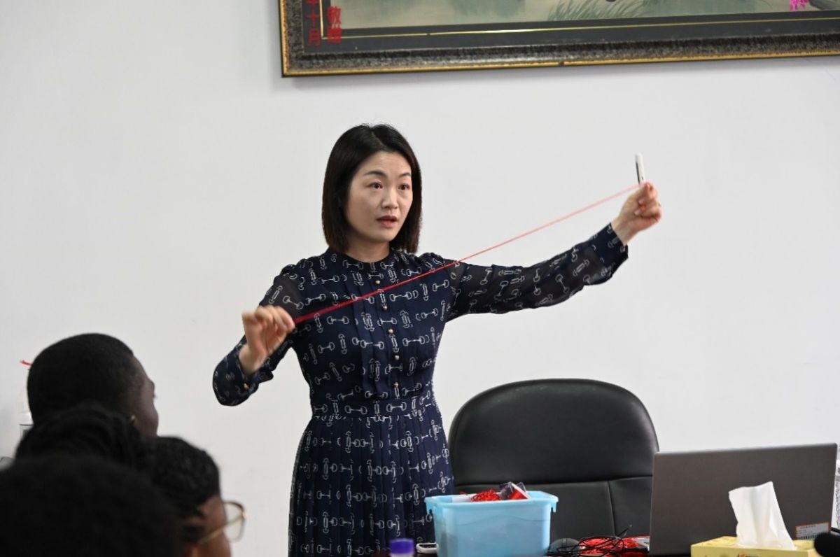 在中文歌曲音乐联欢节上,副校长徐姝与团委、人文学院的老师们带领中国学生和非洲留学生一起演唱歌曲《如愿》《朋友》,表达中非之间的深厚情谊,祝愿世界和平安宁。