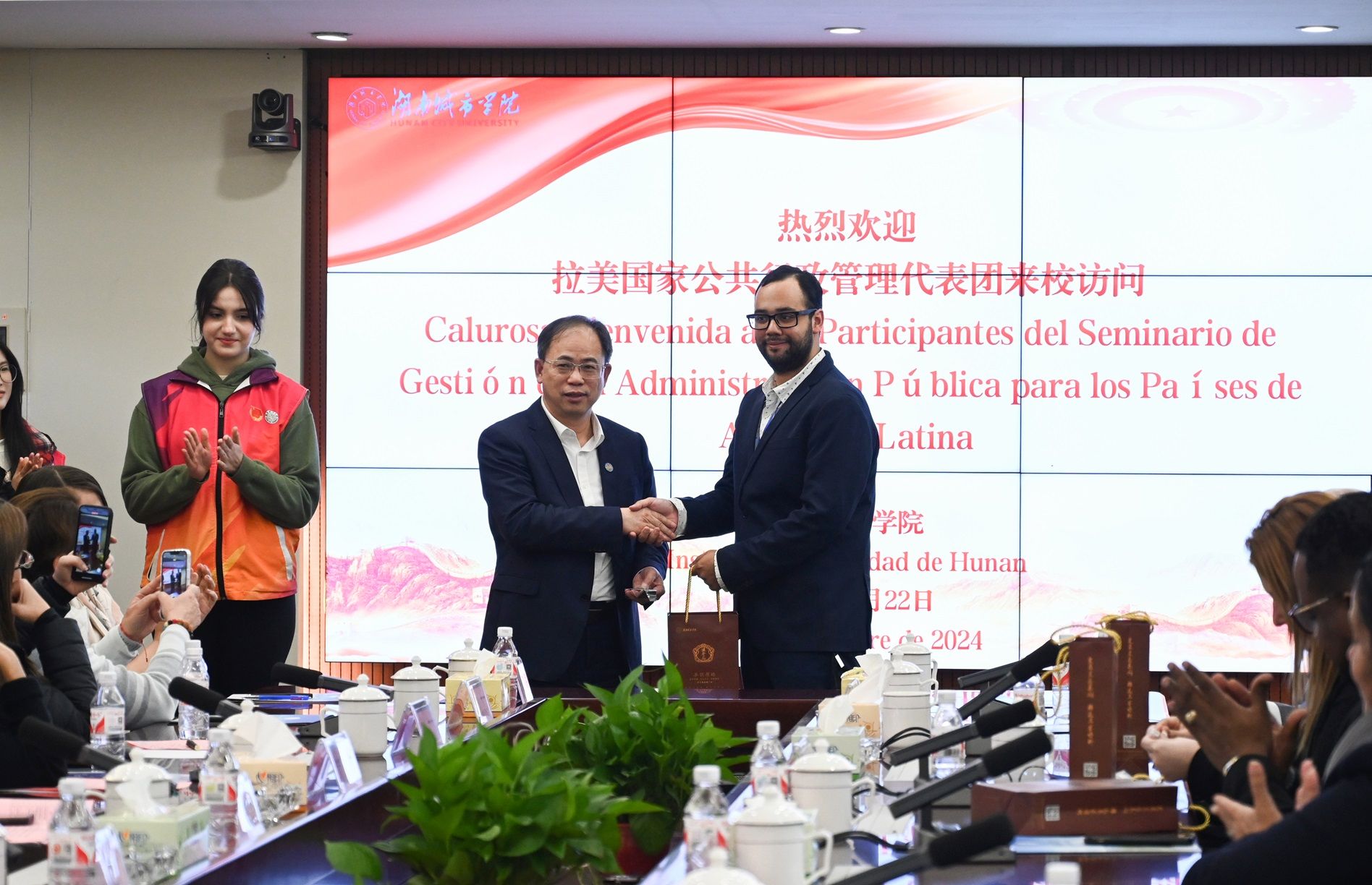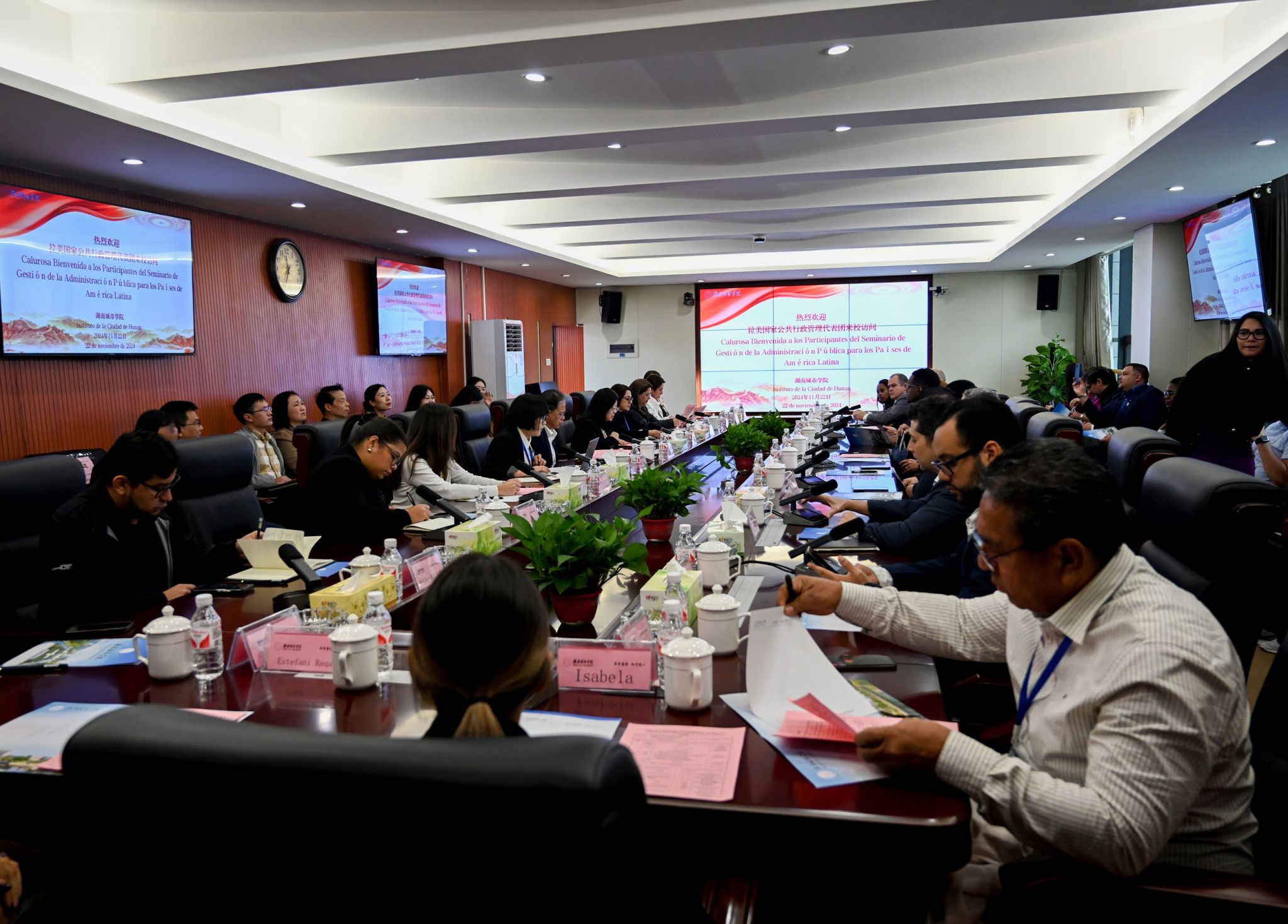 本网讯(通讯员 丁鸣)11月22日,拉美国家公共行政管理代表团来校访问,来自拉美地区8个国家的35位官员代表与Ky开元师生进行了深入交流。校长何振、副校长徐姝出席交流座谈会。