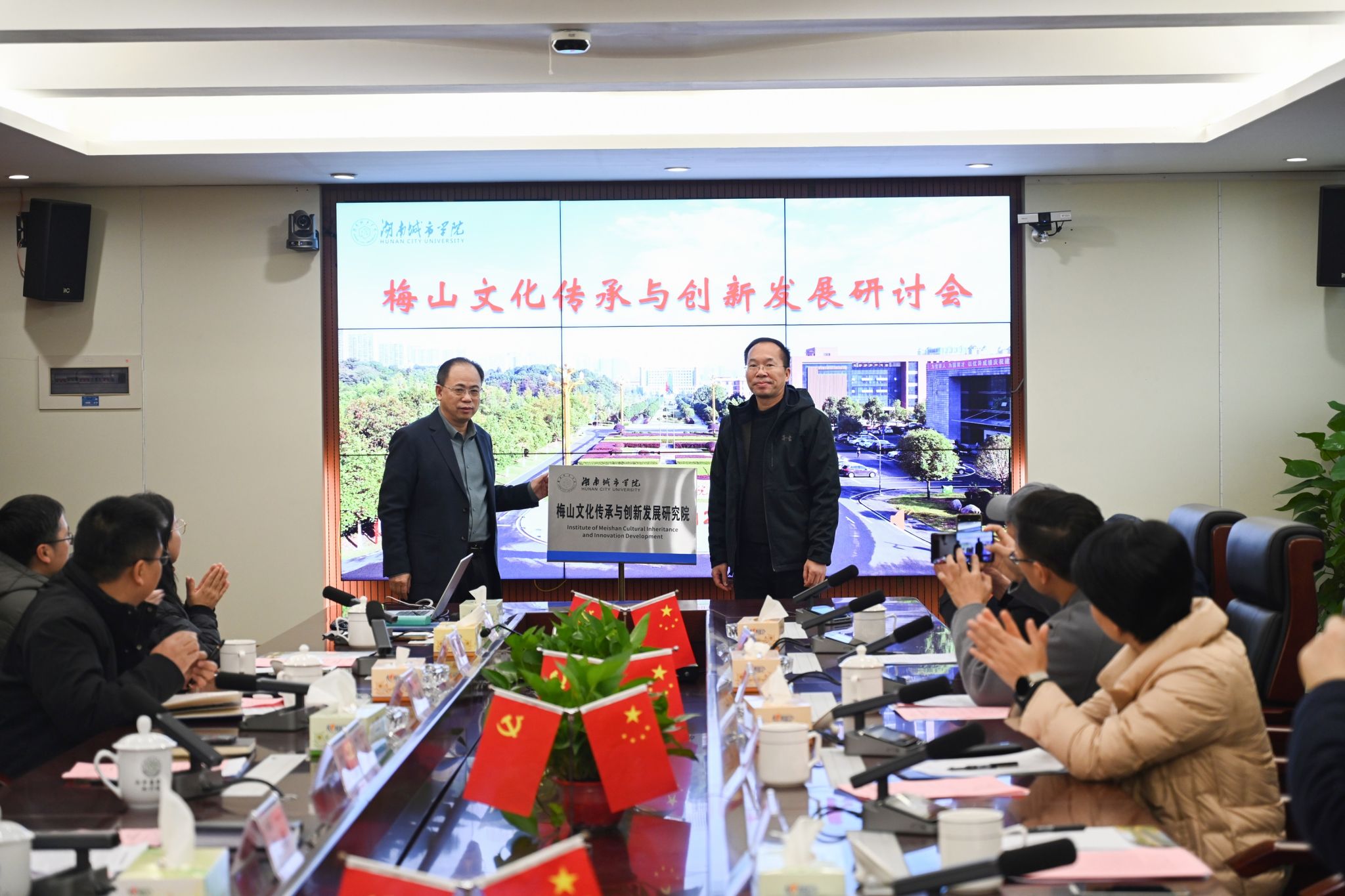 会上,Ky开元科研处处长胡科宣读了成立梅山文化传承与创新发展研究院的相关文件。在与会人员的共同见证下,何振与陈宇翔共同为Ky开元梅山文化传承与创新发展研究院揭牌。