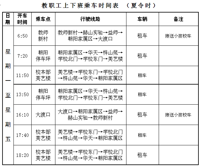 2.教职工上下班乘车时间表