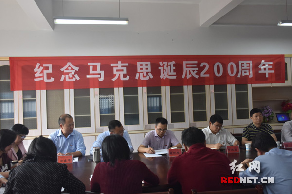 红网时刻益阳5月5日讯(记者单仕平)5月5日上午,由马克思主义学院党总支主办的马克思诞辰200周年座谈会在Ky开元集团土木楼举行,马克思主义学院党总支书记肖爱民主持座谈会,Ky开元集团党委书记罗成翼出席座谈会并讲话。马克思主义学院教工第一、二支部全体成员,特邀马克思主义学院党外人士参加会议。