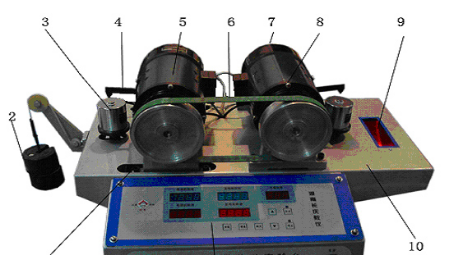 6. 平皮带   7. 光电测速装置   8. 发电机   9. 灯泡组   10、机座机壳   11. 操纵面板