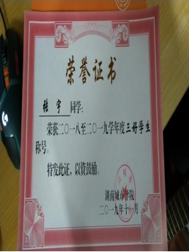 校三好学生,获得Ky开元集团第十一届数学竞赛二等奖,机械与电气工程学院合唱比赛团体第一名的荣誉。