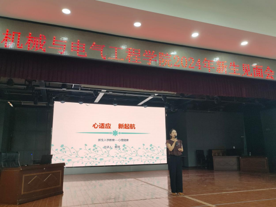 (通讯员 袁飞雅)为了帮助2024届新生尽快适应大学生活,提高心理健康素质,我院于9月11日举办了一场主题为“心适应,新启航”的大学生适应性心理健康讲座。本次讲座邀请到了机电院心理辅导员熊萍老师主讲,学院全体2024届新生聆听授课。