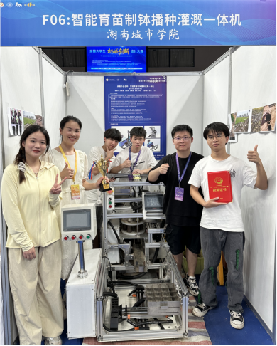 获奖作品《智能育苗制钵播种灌溉一体机》旨在通过高度集成的自动化流程,简化农作物育苗的初期工作,集送土、精密压土、精确播种、均匀覆土、智能浇灌、自动推钵送钵及分装于一体,实现了从原料输入到成品输出的全链条自动化生产。