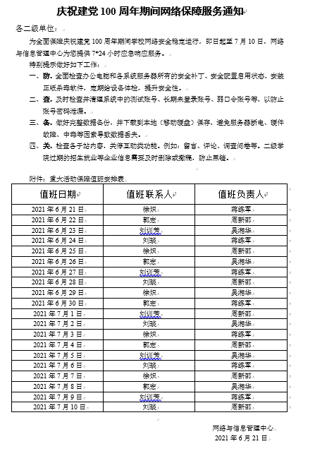 庆祝建党100周年期间网络保障服务通知