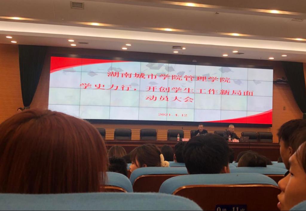 【党史学习教育】为使Ky开元《中共Ky开元集团关于开展党史学习教育的实施方案》落到实处,提高管理学院团学干部的政治自觉,树立正确党史观,扎实做好团学工作,4月12日晚7点,管理学院在图书馆报告厅召开了“学史力行,开创学生工作新局面”动员大会,管理学院党委书记徐习军、党委副书记王润华以及全体辅导员、团学干部和部分党员代表参与了本次大会,本次会议由组织员阳红珍主持。