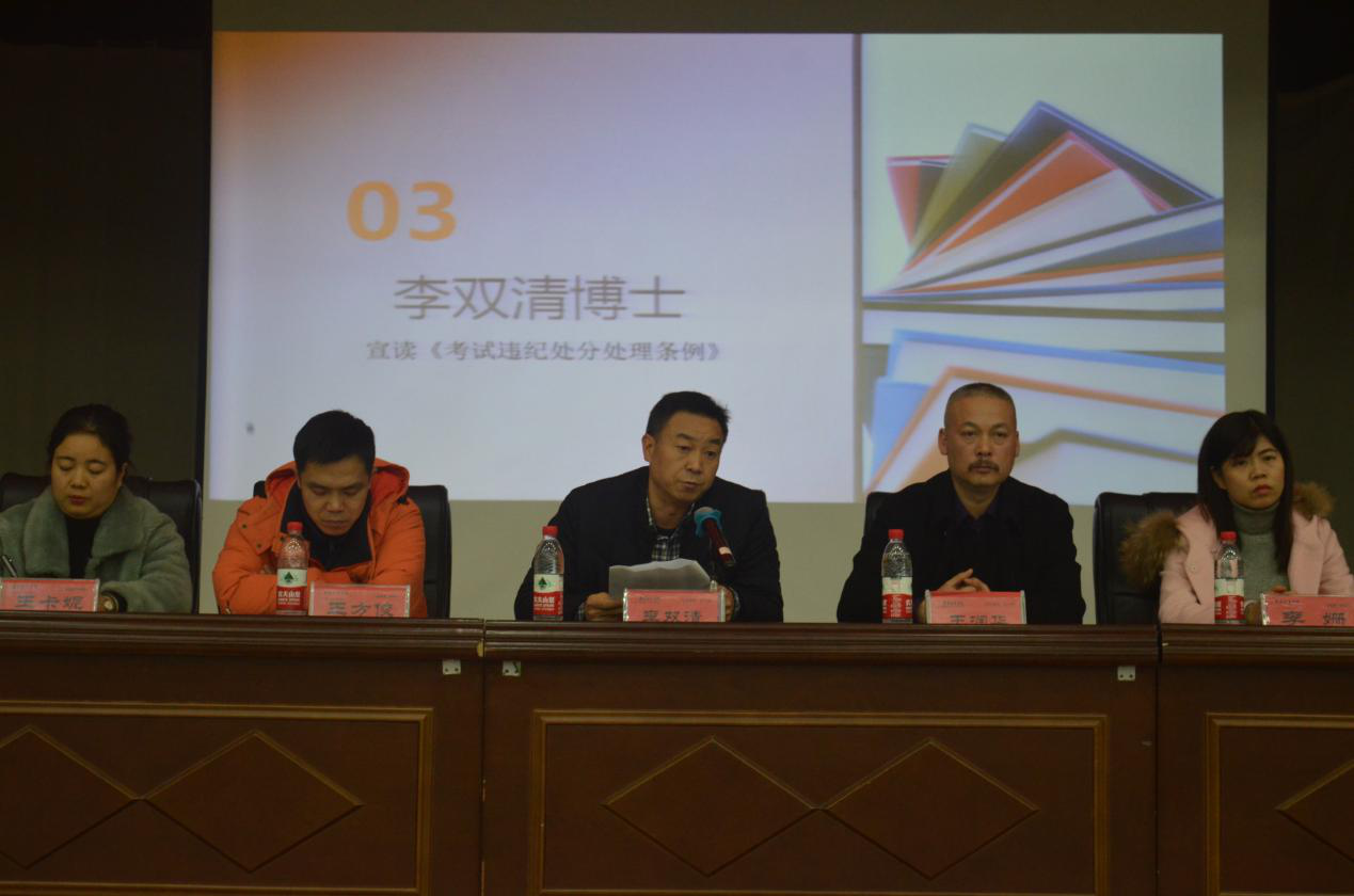 会议由学工办负责学风建设工作的张力老师主持。副院长李双清老师宣读了《Ky开元集团考试违纪处分处理条例》,解读了考试作弊行为的认定和处理办法。党委副书记王润华老师解读了国家考试入刑处理条例,对公平诚信考试提出了要求;同时,对2019届学生寒假社会实践安排、社会实践报告做了部署;强调了学生寝室用电安全、寒假放假出行交通安全、学生自身财产安全的安全注意事项。