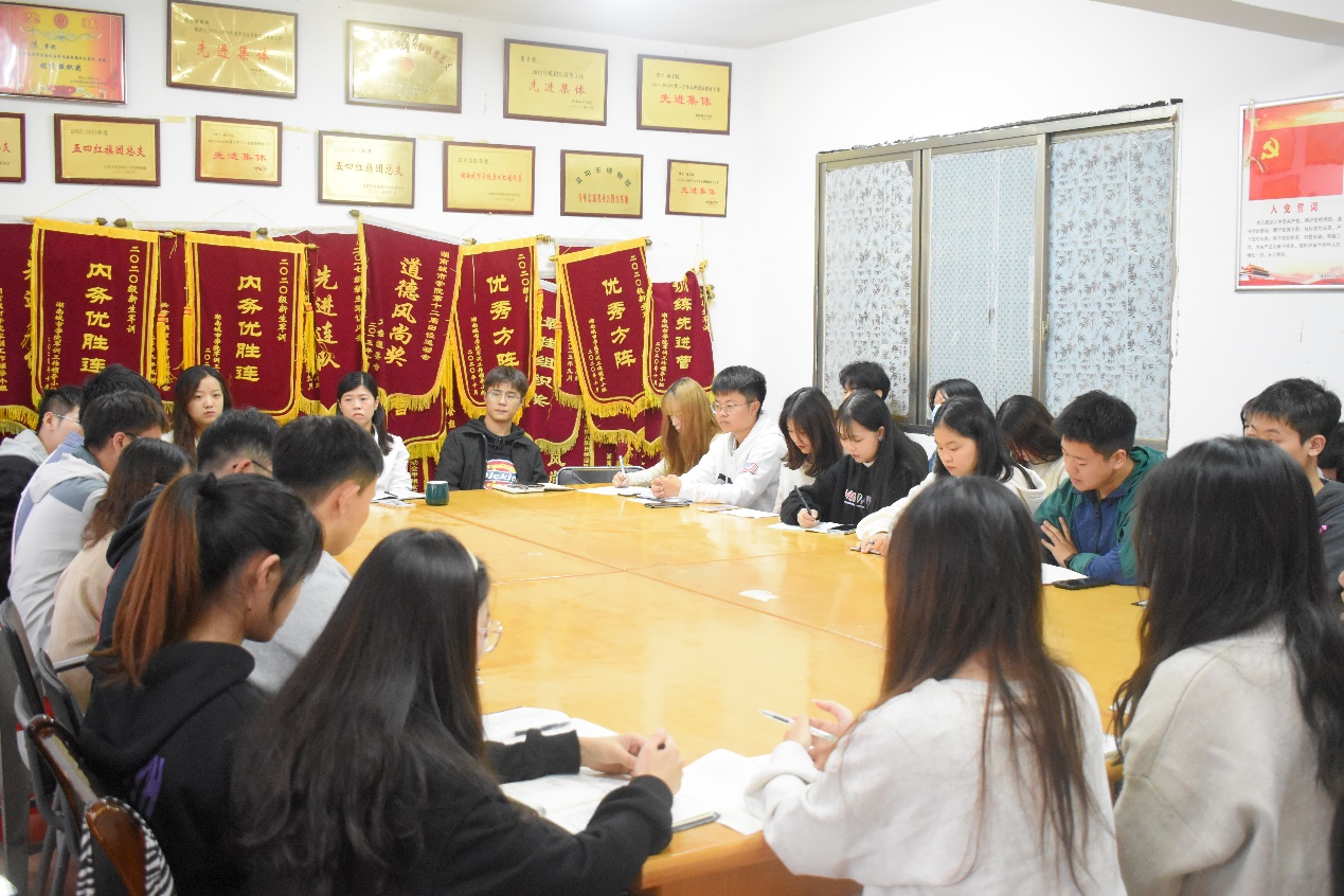 会议第二项,主席郑晓允指出了办公室值班工作中存在的一些问题及会后卫生、贴榜问题,希望学生会各部门之间要多沟通、保持团结,发挥好模范带头作用。